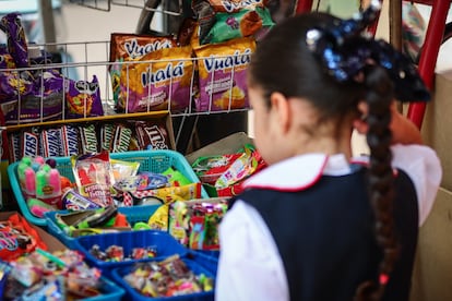 A las siete de la mañana, la calle que rodea cuatro escuelas públicas en la Villa Panamericana, al sur de la Ciudad de México, ya huele a tamales, pan dulce y chilaquiles. Siete puestos ambulantes se instalan estratégicamente antes de que suene el timbre. Estudiantes que van desde los tres hasta los quince años hacen fila para comprar papitas, galletas, jugos y refrescos. Algunos lo comen ahí mismo. Otros lo guardan en la mochila para después. A las dos de la tarde, cuando termina la jornada escolar, la escena se repite, pero con el doble de oferta: hay alrededor de trece negocios que venden caramelos, algodones de azúcar, congeladas y todo tipo de frituras. Hasta hace una semana este paisaje era similar al interior durante el recreo. Pero desde el pasado 29 de marzo entró en vigor la estrategia nacional Vida saludable en las escuelas que prohíbe la venta de productos ultraprocesados en los planteles para combatir la crisis de obesidad infantil que vive el país. El reto, sin embargo, está fuera de las rejas.