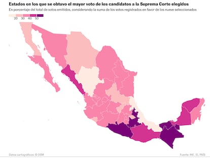 Aguilar ha pedido un “voto de confianza” a las personas que decidieron no acudir a las elecciones judiciales. Estos comicios han registrado unos niveles de abstencionismo sin precedentes en el último medio siglo en México. Solo el 13% del padrón de votantes acudió a las urnas, en lo referente a la elección del Supremo. Para las elecciones de tribunales de menor relevancia, la abstención fue más profunda. “La Suprema Corte estará cercana a la ciudadanía, cercana al pueblo, y cumplirá su mandato constitucional de dar certeza a todos”, ha ofrecido el jurista.