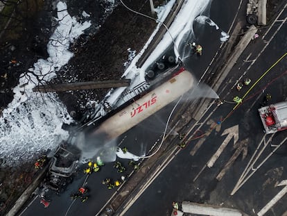 Karen Millán vio a su vecina Alicia Matías salir de casa el miércoles a las 9.00 de la mañana. La mujer, de 50 años, trabaja como checadora en las combis que paran cerca del puente de la Concordia, en Iztapalapa, al suroriente de Ciudad de México. A las 14.07, una pipa que transportaba 49.000 litros de gas licuado de petróleo volcó sobre el puente provocando una fuga masiva. El impacto generó una explosión y ráfagas de fuego de al menos 30 metros de altura. Millán vio la tragedia en las noticias y desde ahí identificó a Matías entre las fotos de los heridos. La mujer seguía cargando a su nieta Azuleth, una bebé de apenas dos años, a la que solía llevar a trabajar con ella. La vecina logró llegar al Hospital General 53 entre el tráfico paralizado, adonde habían llevado a Matías y a otra quincena de lesionados. “Ella tiene quemaduras en el 90% de su cuerpo, pero consiguió salvar a la bebé en sus brazos”, narra Millán. El accidente ha dejado de momento 8 fallecidos y 94 heridos, 22 en estado crítico.