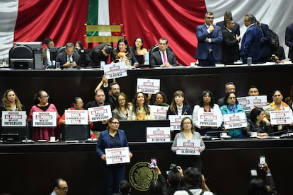 La Cámara de Diputados ha aprobado este martes en lo general la reforma a la Ley de Amparo promovida por la presidenta, Claudia Sheinbaum, gracias a la mayoría aplanadora morenista y a sus aliados parlamentarios, el Partido Verde y el Partido del Trabajo, pese a las acusaciones de “fraude” de la oposición. La controvertida iniciativa ha salido adelante, a la espera de que los legisladores presenten sus reservas ―y algunas se anticipan controvertidas, como la reescritura de la cláusula de retroactividad―, con 345 votos a favor, 131 en contra y tres abstenciones. En este último grupo se encuentra una diputada de la propia bancada oficialista y exministra de la Suprema Corte, Olga Sánchez Cordero, que en la misma línea que los expertos advirtió la tarde anterior de que la redacción de la nueva norma, en su opinión, “restringe el acceso a la justicia constitucional”. A pesar de las numerosas resistencias, la reforma del oficialismo está un paso más cerca de la meta final.