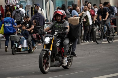 En la Ciudad de México es común identificar a cientos de motociclistas con mochilas para alimentos. Incluso, cerca de las zonas en las que hay muchos restaurantes se concentran para esperar los pedidos que marque la aplicación. Esta forma de trabajo les permite tener horarios flexibles y se ha convertido en una respuesta ante la falta de empleo. De acuerdo con los datos del Inegi, en la capital del país había al menos 36.000 motociclistas que laboraban en este sector, 21.000 de ellos lo hacían de manera informal, representaban cerca del 60% de estos trabajadores, hasta marzo de 2025.
