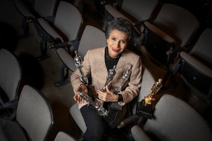 “Me puse yo misma una coach para que me ayudara a sacar el papel. Nunca acabas de aprender en esta carrera. Cada papel lo afronto con los mismos nervios de la primera vez. Yo no me siento ‘ay, sí, tengo muchos premios’. Todos esos reconocimientos se han trabajado muchísimo y este [señala presumida y sonriente al Ariel de Oro detrás de ella] lo he trabajado por 53 años”, explica.