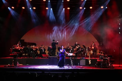 Julieta Venegas ha hecho que el dolor de la pérdida o la nostalgia del amor sean más dulces cantándolas a todo pulmón. La artista mexicana se entregó con pasión a un público anhelante en un hermoso concierto sinfónico, junto a la Orquesta de la Universidad de Guanajuato, en el que es uno de los platos fuertes del Festival Internacional Cervantino. La de Tijuana traía con ella una sorpresa: el estreno de una nueva balada, Callaron las canciones, dedicada a una amiga fallecida. Hizo la noche del jueves de la explanada de la Alhóndiga de Granaditas el escenario perfecto para cantar las partidas, los dolores del corazón, ese sentimiento tan hondo que causan las nostalgias, porque recordó que vamos todos en el mismo tren, cometiendo errores y pisando mal. Y los sufrimientos se llevan mejor si son compartidos.