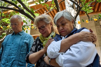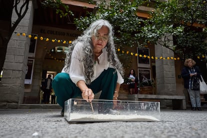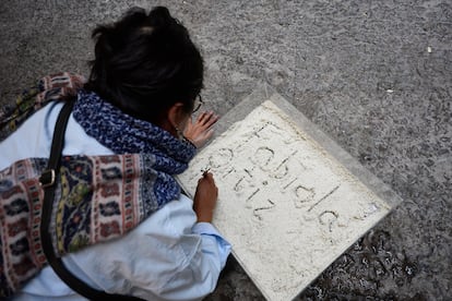 La primera ha sido la escritora, ganadora un Pulitzer por la obra en la que atraviesa el feminicidio de su hermana, que con cuidado ha redactado: “Liliana, 1969-1990″. En otro cubículo de tierra mojada ha seguido Silvia Ortiz, que ha escrito el nombre de su hermana Lilian, asesinada en 2011 en Ciudad de México. “La historia es muy parecida a la que vivió Cristina”, relata antes de marcharse: “Me voy tranquila”. Después, Sara Güizado, maestra en la capital, ha escrito el nombre de su compañera Fabiola Ortiz, asesinada en Oaxaca por un alumno. Han aparecido Mireya y Doña Mari, Elisa, Georgina y Lola, Emilia y Albina. Entre murmullos, en este patio del bullicioso centro de Ciudad de México se ha llevado a cabo un ritual.