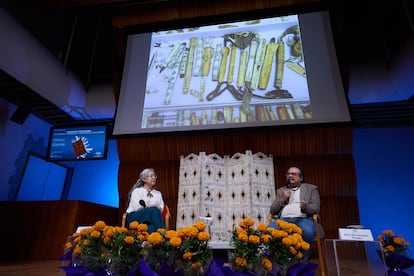Esta historia comienza en los almacenes del Humboldt Forum, en Berlín, en 2024. La escritora Cristina Rivera Garza y el artista Saúl Hernández habían recibido un encargo: elegir un objeto al que devolver la historia para, así, poder revertirla. Durante cuatro días recorrieron unos edificios atestados del “pillaje del colonialismo alemán”. Buscaron entre miles de rastros pasados; decenas de jades apilados “como cadáveres”, también kachinas rodeadas de maíz, capas hechas de piel y plumas verdosas. Ellos escogieron un objeto pequeño, para la palma de una niña, sencillo pero filoso, hecho de hueso: un cuchillo historia, llamado storyknife en inglés y yaaruin en yupik, la herramienta que usaban las niñas en la costa de Alaska para contar lo que les había sucedido. Ellas escribían sobre la nieve o en la tierra mojada del cauce de un río, pero para seguir contando debían seguir borrando. “Se parece tanto a lo que uno hace: uno escribe pero no sabe cuándo se va a borrar”, explica Rivera Garza a este periódico: “De inmediato lo conecté con cómo contamos historias de violencia de género, especialmente de feminicidio. Estas son acalladas, es decir, son borradas, y nosotras insistimos, las volvemos a decir y las vuelven a borrar”.