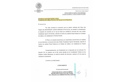 México eligió a sus jueces por primera vez este junio mediante voto popular en unas controvertidas elecciones que siguen originando episodios sin precedentes casi medio año después. Este martes ha renunciado el primer juzgador federal de los 881 cargos que salieron de las urnas meses atrás. Se trata de Adrián Guadalupe Aguirre, juzgador en materia penal en Jalisco, que ha presentado su dimisión apenas dos meses después de haber tomado protesta del cargo. La petición de renuncia ha llegado a la Mesa Directiva del Senado, que ya la ha trasladado a la Comisión de Justicia para su resolución. El órgano deberá dictaminar si las causas de la renuncia son o no razonables. En caso de resolver contra la petición de dimisión, si el juez persiste en su intención, el abandono puede ser motivo de responsabilidad civil o administrativa, según explican fuentes de la Comisión.