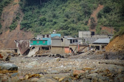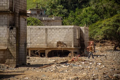 De 200 habitantes, ahora solo quedan seis. Todos los demás se han ido de Chapula, una comunidad en la huasteca de Hidalgo que solía estar rodeada por un río y es una de las más afectadas por el paso del huracán Priscilla un mes atrás. Las lluvias torrenciales enterraron la localidad con una fuerza que, dicen los que han decidido reconstruirla de la nada, “no se había visto en 100 años”. Raúl Jiménez Montiel, un hombre de 50 años que se dedica al campo, está cuidando la entrada al pueblo, que pertenece al municipio de Tianguistengo, mientras algunas familias regresan solo a rescatar de sus hogares lo poco que dejó el agua y el lodo. Todavía hay quienes mantienen la esperanza de levantar una población que quedó incomunicada, sin luz ni servicios básicos.