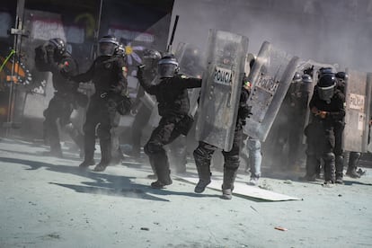 En cuestión de dos horas, los manifestantes de la llamada marcha de la generación Z habían derribado las enormes vallas metálicas que protegían el Palacio Nacional. En los videos difundidos en las redes se observa a jóvenes encapuchados arrojando objetos contra los policías y golpeándolos con tubos, palos y escudos improvisados. Un policía herido tuvo que ser rescatado por paramédicos voluntarios mientras un grupo de manifestantes lo perseguía al grito de: “¡Agárrenlo, es policía!”. Por su parte, el propio Gobierno capitalino ha comenzado una “investigación exhaustiva” por uso excesivo de la fuerza de los uniformados, así como agresiones a periodistas. La marcha, que el sábado reunió a unas 17.000 personas en el centro de Ciudad de México, dejó un saldo de 120 heridos, de los cuales 100 son policías. Aunque la mayoría fue dada de alta el mismo día, cinco agentes permanecen hospitalizados, según ha informado este lunes la Secretaría de Seguridad Ciudadana (SSC). Todos se encuentran estables y fuera de peligro.