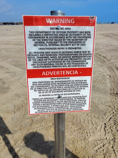 “Esta propiedad del Departamento de Defensa ha sido declarada zona restringida [...] Se prohíbe la entrada no autorizada”. Es parte del texto en español e inglés que podía leerse en seis letreros que fueron colocados la mañana del lunes en la playa Bagdad, ubicada en el municipio de Matamoros, Tamaulipas, en las costas del Golfo de México, a unos 30 kilómetros de distancia de la frontera con Estados Unidos. Integrantes de la organización ambientalista Conibio Global dieron aviso a las autoridades y documentaron con fotografías el momento en el que varios hombres colocaron los letreros y advirtieron que eran parte del Gobierno estadounidense. La presidenta Claudia Sheinbaum ha confirmado este martes que están en consultas para esclarecer el incidente y revisar lo que establecen los tratados vigentes de límites y aguas.