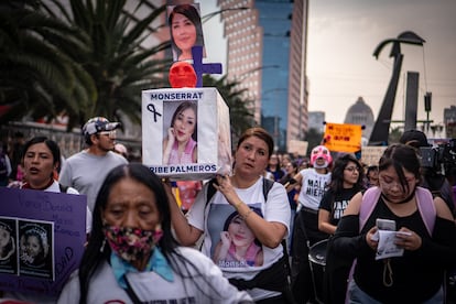 Alrededor de 800 mujeres, entre maestras, estudiantes, trabajadoras, madres buscadoras y adultas mayores, han marchado este martes en Ciudad de México en el Día Internacional de la Eliminación de la Violencia contra la Mujer. La movilización ha transcurrido de forma pacífica y sin incidentes, en contraste a varias protestas recientes que han desfilado por las calles de la capital. La protesta, que ha durado alrededor de tres horas, avanzó desde la Glorieta de las Mujeres que Luchan hasta el Zócalo. Allí se han topado con todos los edificios que rodean la plancha blindados con decenas de vallas metálicas. El Gobierno capitalino desplegó para la marcha a 600 mujeres policía, que permanecieron a distancia y no intervinieron durante el recorrido.