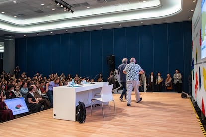 La libertad ha sido siempre su horizonte, venga de donde venga la embestida. A la que acomete ahora la extrema derecha —en América, en España— le ha dedicado buena parte de una intervención en la que se ha movido más cómodo por los aspectos políticos que por los artísticos. La esperanza y el miedo se han abierto paso como las principales emociones para navegar una época de incertidumbre que aqueja especialmente a los más jóvenes, que le han preguntado incisivos sobre ella.