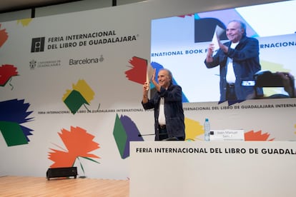 “Si no me hubieran invitado, me habría invitado”, dijo Serrat en una presentación con los medios que ya entonces reventó la sala de prensa de la feria. “Es el mejor embajador posible”, lo había presentado Anna Guitart, comisaria del programa cultural de Barcelona, invitada de honor, y reiterará ante la apabullante acogida en el auditorio Juan Rulfo, el más grande de la exposición. La clave la da, sin embargo, el escritor Juan Pablo Villalobos, jalisciense afincado en Barcelona: “En México, la lengua catalana se descubrió a través de Serrat”.