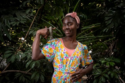 Shnaynise Joseph, que prefiere que le digan Nunu, es una de las mujeres que integran esta iniciativa. Aterrizó en México en busca de oportunidades y una mejor vida para su familia. Esta mujer haitiana de 30 años recuerda su llegada al país embarazada y junto a su esposo en 2024. Sin perder de vista a su pequeño e inquieto hijo de un año, narra los obstáculos a los que las migrantes se enfrentan, sobre todo, si son madres. “Con los niños es muy difícil porque, a veces, hay empresas en las que tienes que trabajar 10 horas. Imagina para cuidar al niño, la familia y a ti también. Es muy pesado”, comenta. Para Nunu, ser parte de este proyecto “es una bendición” porque le permite tener un crecimiento económico y aprender cosas nuevas. Ella ya cosía antes de empezar en Tejiendo futuros porque en Haití confeccionaba uniformes para costear sus gastos de la escuela, pero cuenta que, al principio, tuvo miedo porque no sabía hacer llaveros. El temor se disipó después de que una compañera le enseñara lo fácil que era y, ahora, Nunu ya puede elaborarlos en cuestión de minutos.