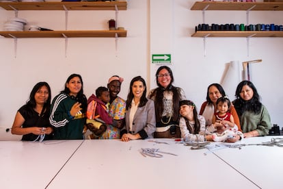 Un gran aliado de esta iniciativa es la OIM, una organización que, además de brindar asesoría, busca canalizar en un futuro a las mujeres a otros trabajos fuera de la industria textil para brindarles más opciones de empleo. Con este modelo, si alguna de ellas prefiere incursionar en otro ámbito después de haber sido capacitada, podrá obtener otro empleo digno y justo. En medio de la veintena de personas que se reúnen una mañana de diciembre en el taller de Básicos de México, en el que se aloja Tejiendo futuros, la embajadora de Buena Voluntad de OIM America Ferrera escucha atentamente las historias de las siete mujeres y lo que significa para ellas pertenecer a este proyecto. Para la actriz estadounidense de Barbie y Betty, mi fea bella, este tipo de iniciativas contribuye a cambiar la narrativa “haciendo la migración positiva para los gobiernos locales y el sector privado”. La también activista de la comunidad latina en EE UU resalta “cómo los países anfitriones pueden tratar a los migrantes con dignidad y proveer seguridad a las personas que, muchas veces, han sufrido situaciones muy traumáticas y peligrosas”.