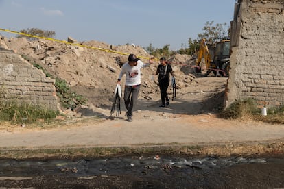 Mi compañera Erika acompañó a uno de los colectivos de buscadores en una de sus expediciones, esta vez liderados por la Fiscalía. Fue en el municipio de Arroyo Hondo, a 17 kilómetros del Akron. Allí encontraron en septiembre una fosa clandestina, camuflada en un antiguo taller de coches. El colectivo Guerreros buscadores de Jalisco llegó antes que el personal de la Fiscalía. “Venimos a checar que hagan bien su trabajo. Esto no lo deberíamos de hacer, pero nos dimos cuenta que encontrábamos fosas, avisábamos a las autoridades y ellos no hacían su trabajo”, le contó uno de los buscadores a Erika mientras una pala excavadora removía la tierra.