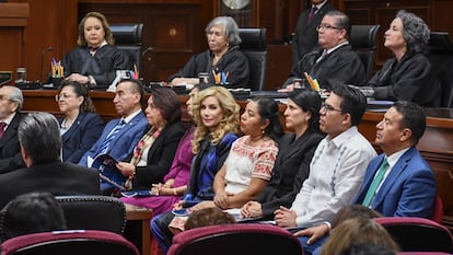 “Debilitaron la presidencia de la Corte. Le quitaron todo, pero se está quedando con todos los golpes”, apunta una fuente cercana al tribunal. La Suprema Corte ha sido la diana de todos los dardos y sus nuevos integrantes, marcados por la polémica elección y sus acordeones, se convirtieron en la cara visible de todo lo que fallaba. Así, muy pronto, las tensiones entre ellos saltaron de los salones privados a las discusiones públicas en el pleno. En uno de los últimos debates, Lenia Batres acabó con todos los precedentes y afirmó que no iba a incorporar las consideraciones del resto de los ministros a su proyecto. El gesto, más simbólico que con consecuencias reales, evidenció cómo la ministra podía torcer el brazo a la Corte y a su presidente. “Al no llegar a un acuerdo, Aguilar pudo decir que el asunto se returnaba a otro ministro, pero no lo hizo. Ese fue uno de los puntos de inflexión donde el ministro presidente perdió poder”, considera esta misma fuente.