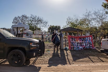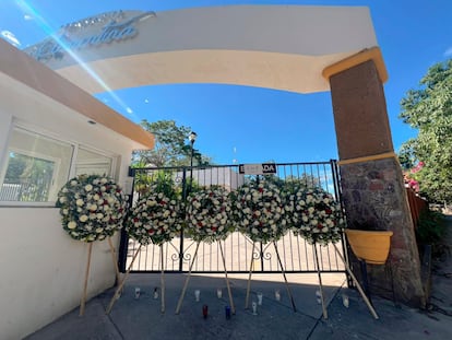 La ofrenda de La Clementina cubre parte de la puerta de entrada al lugar que servía como el campamento de los mineros. Hasta aquí llegaron, el viernes 23 de enero, un grupo de hombres armados vinculados a la facción de Los Chapitos del Cartel de Sinaloa. Los criminales se llevaron a una decena de empleados de la compañía. Los sicarios asesinaron a la mitad de los secuestrados y dejaron los cuerpos en fosas clandestinas ubicadas en un pueblo llamado El Verde, a 15 kilómetros del campamento.