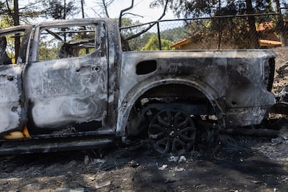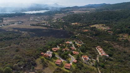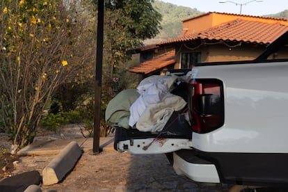 EL PAÍS accede a este complejo de cabañas tres días después del operativo militar. Está con las puertas abiertas, sin protección federal ni estatal. Lleno de vestigios del enfrentamiento, rodeado de campo quemado y de vehículos calcinados. Tampoco hay integrantes de ningún cuerpo de seguridad cerca. El hospedaje Cabañas La Loma está identificado por el Departamento del Tesoro de Estados Unidos como una de las empresas vinculadas al Cartel Jalisco desde 2015. En el pueblo, lo conocían como uno de los lugares más privados de esta sierra, que está acostumbrada a ver pasearse a personas con escolta y vehículos de lujo.