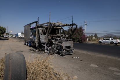 Mientras tanto, el CJNG ya había iniciado la ola de violencia en represalia por la muerte de su jefe. Colocaron más de 250 bloqueos, 65 de ellos en Jalisco. Tres días después aún se observan los esqueletos calcinados, de un camión que llevaba melones, de otro de paquetería o de varios coches, utilizados para cerrar las vías. “Todas las entradas de Tapalpa se cerraron”, comenta el taxista. En cuanto los militares se fueron después de los operativos, “el pueblo se quedó solo, a la deriva”. Cayó la noche y salió el cartel. “Iban como perros”, señala Joame, una vecina de Tapalpa: “Yo estaba en la cocina cuando les oí gritar: ‘Traigan gasolina para quemar el Oxxo”.