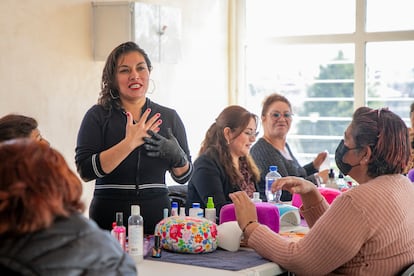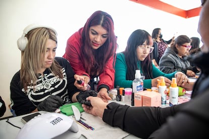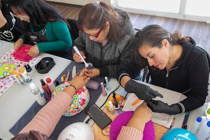 Hasta hace muy poco tiempo, ellas no se conocían ni compartían los mismos espacios ni el círculo de amistades. Estas mujeres de entre 22 y 70 años aprenden a poner uñas en una sala luminosa del tercer piso de un centro público del municipio de Tultepec, en el Estado de México, ubicado a unos 40 kilómetros de la capital del país. Ahí, sentadas una frente a otra, mientras remojan los dedos de sus manos en acetona para remover el esmalte viejo y colocar el nuevo, se cuentan sus vidas, comparten experiencias y se emocionan con la idea de emprender su propio negocio una vez que terminen los cursos. No todas han llegado solo por el interés de aprender; algunas lograron salir de hogares violentos y ahora comienzan procesos de reconstrucción. “Encontrar este lugar, que además es gratis, me emociona, me sacó de mi depresión”, dice María Guadalupe, de 62 años.