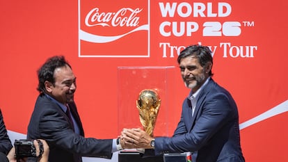 La llegada de la Copa del Mundo a suelo mexicano estuvo escoltada por los embajadores de México, Juan Ramón de la Fuente, y de Estados Unidos, Ronald Johnson. “México está listo para recibir a todas y todos los aficionados. Llegan a un lugar seguro, tranquilo y hospitalario”, dijo el canciller mexicano. Al acto también asistió Delfina Gómez, gobernadora del Estado de México. El hombre que robó las miradas fue Hugo Sánchez, el mejor futbolista de la historia de México, según su trayectoria y goles. Hugol se quedó con las ganas de levantar el trofeo debido a la regla de oro: solo los campeones y jefes de Estado pueden siquiera tocarla. Quien sí pudo alzarla fue Roberto Ayala, exfutbolista y parte del cuerpo técnico ganador en el Mundial de Qatar.