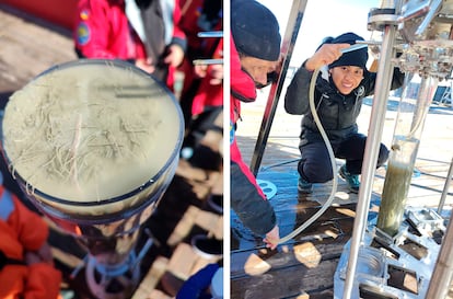 Cuenta que el multinucleador se sumerge en el agua, succiona el lodo que encuentra en el fondo y va rellenando cada uno de sus tubos de muestras de ese sedimento. Tras la extracción, con el aparato fuera del agua, las científicas toman este material para su análisis en el laboratorio. El potencial de esas muestras es enorme. La doctora Almaraz afirma que un milímetro de sedimento recolectado equivale aproximadamente a 100 años de historia paleoclimática. Y detalla: “Podemos reconstruir, por ejemplo, el cambio climático, qué tan rápido se está deshielando la zona, cuánto ha aumentado el nivel del mar y los cambios de salinidad, pH y oxigenación”.