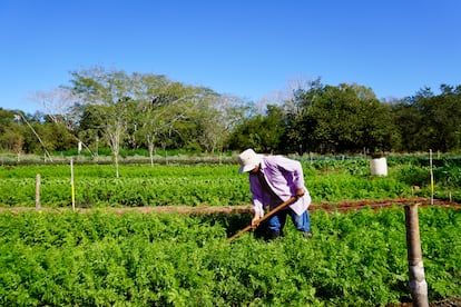 Con sus ahorros compró 200 hectáreas en Espita, entre Cancún y Mérida: lejos de polos turísticos y la contaminación, pero cerca de poblaciones que requerían empleo. “Me interesó este predio porque no tenía que cortar selva, pues ya estaba impactado por malas prácticas de ganadería. Lo limpiamos, instalamos un sistema de riego, comenzamos a sembrar y a ofrecer los productos en restaurantes de la región”, explica. La agricultura, agrega, es generosa: los rábanos crecen en 20 días, los tomates en tres meses y, con buena planeación, puede haber producción escalonada en pocas semanas.