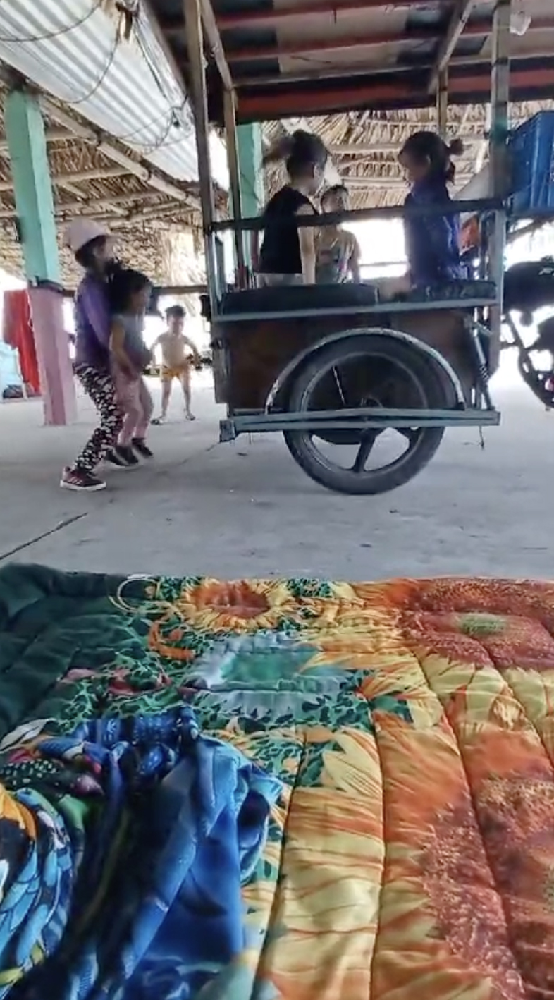 “Eres un huevo podrido”, dice un niñito, “¿quién es el último?”, pregunta otro, “yo soy el huevo podrido”, se ríe el más pequeño. En un video grabado el 21 de octubre de 2024, seis niños corretean en un patio de columnas verdes y techo de palma. Yosselyn los está grabando desde San José El Hueyate antes de salir en lancha, se lo envía a su familia. Ahí en esa grabación aparece Valentina, la hija de Cindy Bueso, lleva la misma ropa que en la imagen que recibió su abuela Teresa Barrera, en Estados Unidos, por parte del coyote para indicar que ya los había entregado.