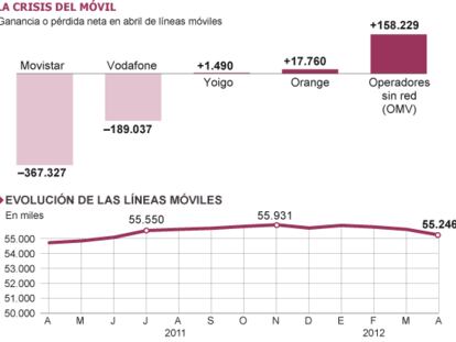Movistar pierde más de 100.000 líneas de móvil y 26.000 de banda ancha. -El mercado crece por las operadoras alternativas y los móviles virtuales