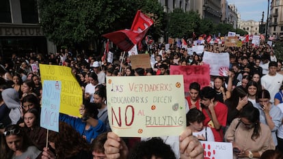En la manifestación de Sevilla los jóvenes se preguntaban si podían sentirse seguros tras conocerse que el colegio de Sandra no la protegió del acoso que denunció