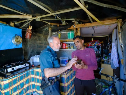 Un equipo de atención al inmigrante del instituto armado recorre a diario los asentamientos chabolistas de la provincia de Almería en un cometido donde lo humanitario está por encima de lo policial