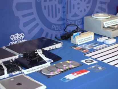 Cuatro detenidos, que reproducían presuntamente las tarjetas en un laboratorio de Alcalá El grupo realizaba compras fraudulentas en establecimientos de la Comunidad de Madrid Los arrestados se nutrían de numeraciones de tarjetas de bancos estadounidenses