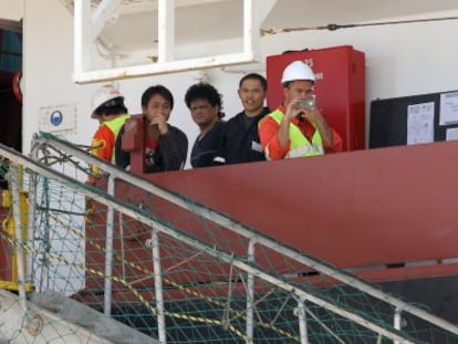 La nave, con unos 15 tripulantes a bordo, procede Costa de Márfil Los inmigrantes viajaban en una de las zonas de carga cubiertos con una lona