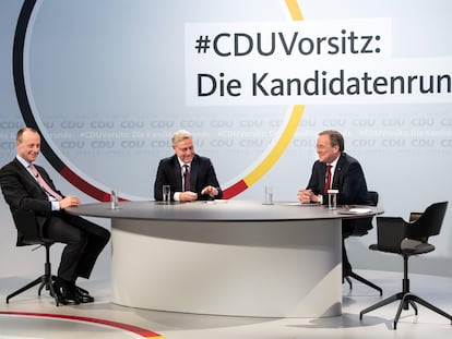 Los tres candidatos que compiten por liderar el centro-derecha alemán debaten ante los militantes del partido