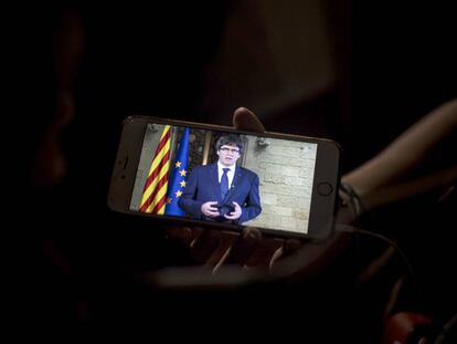 Rajoy anuncia, con el respaldo de PSOE y Ciudadanos, las medidas adoptadas bajo el artículo 155 de la Constitución. Su aplicación se traducirá en la destitución de Puigdemont y la limitación de funciones del Parlament