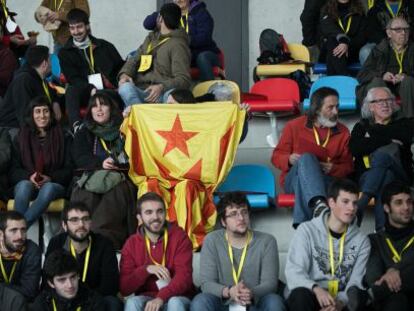 El debat entre els més de 3.000 militants tancats a Sabadell va tenir lloc en un escenari improvisat on cridaven intentant convèncer la resta