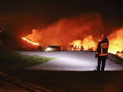 El fuerte viento dificulta las labores de extinción de los fuegos declarados en Cantabria, Euskadi y Asturias