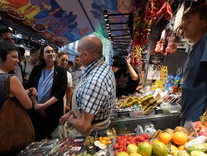 La alcaldesa de Barcelona visita el icónico mercado el primer día de su apertura tras el atentado perpetrado a escasos metros de los puestos