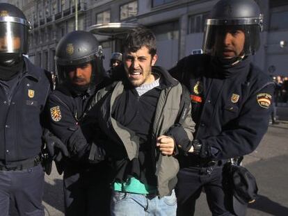 Nueve manifestantes detenidos y al menos seis heridos leves Los incidentes se registran al final de una marcha en apoyo a los mineros y contra los recortes