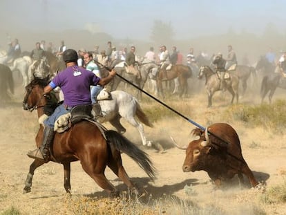 Tordesillas ha acogido una nueva edición del torneo del toro de La Vega entre las protestas de un centenar de antitaurinos. Dos personas han sido víctimas de sendas cogidas, entre ellas el fotógrafo de AFP Pedro Armestre.