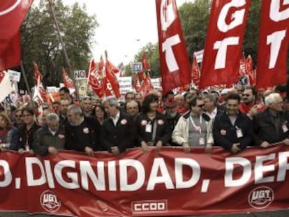 Las consignas contra los recortes y la reforma laboral, protagonistas de las manifestaciones Toxo afirma que es posible que en la legislatura de Rajoy se llegue a seis millones de parados