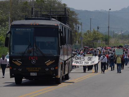 Las protestas tuvieron lugar este martes después de que un juez de Chiapas decidiera que 19 de los normalistas detenidos continúen recluidos en el penal El Amate