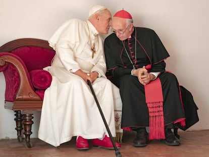 La inédita convivencia en el tiempo entre el actual pontífice y el emérito, a los que interpretan Jonathan Pryce y Anthony Hopkins, es el argumento de una película de Netflix que fabula entre la realidad y la ficción