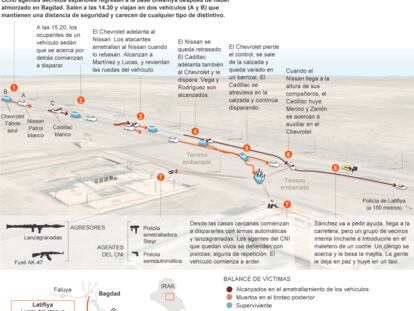 La televisión oficial de Siria ha emitido imágenes del coche en el que fueron atacados