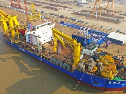 La embarcación es capaz de dragar 6.000 metros cúbicos de arena por hora, el equivalente a más de dos piscinas olímpicas