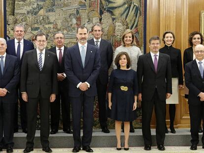 Los ministros del nuevo Gobierno presidido por Mariano Rajoy juran o prometen su cargo ante el Rey Felipe VI en el Palacio de la Zarzuela de Madrid