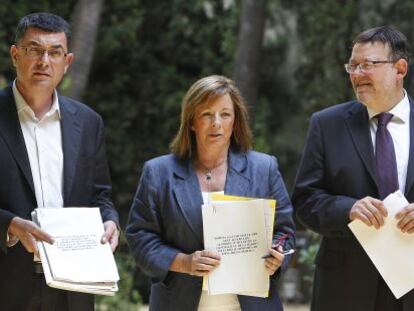 Ximo Puig, Enric Morera y Marga Sanz un texto alternativo al proyecto de ley del Consell Los tres grupos apelan al acuerdo sobre la gestión de un instrumento clave para la identidad