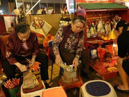 Un grupo de hechiceras bajo un paso elevado atiza fotos de los enemigos, siguiendo un antiguo ritual