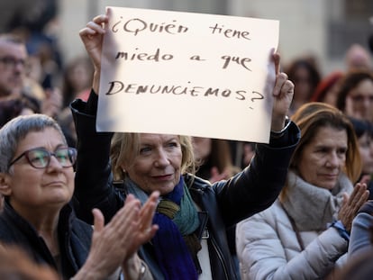 Decenas de manifestantes se concentran este lunes a la plaza Sant Jaume para mostrar su apoyo a la denunciante