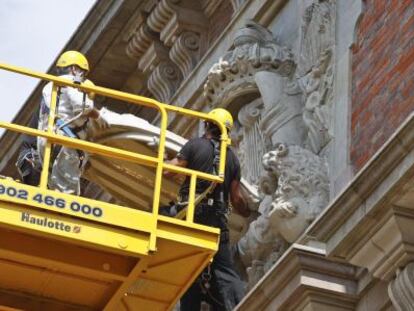 Los aledaños de la escultura de Rafael Casanova se preparan para el 11 de septiembre